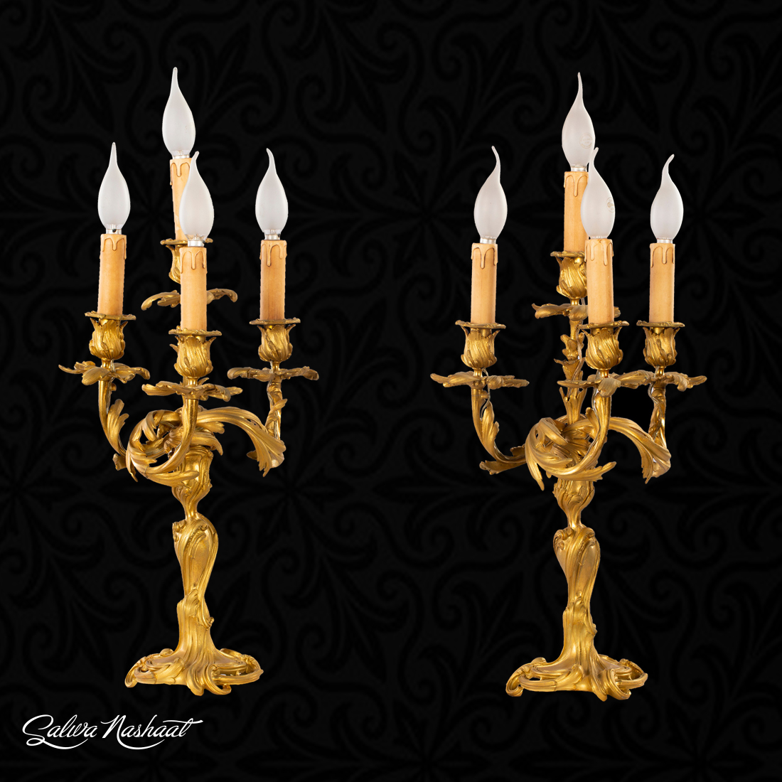 Pair of French bronze 4-candle-candelabra, 65 cm