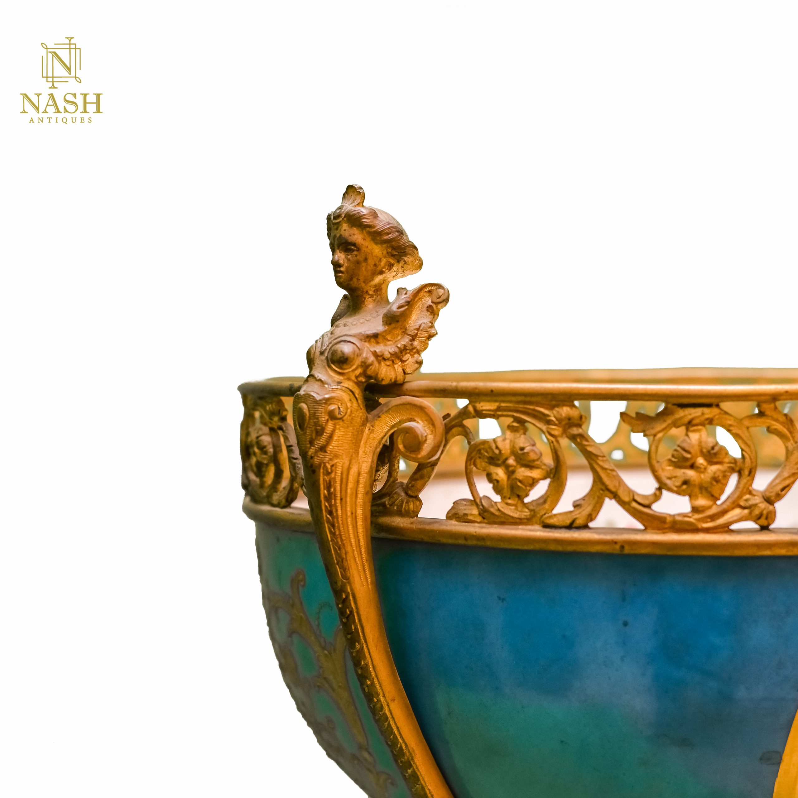 Turquoise Porcelain Vase with hand made art